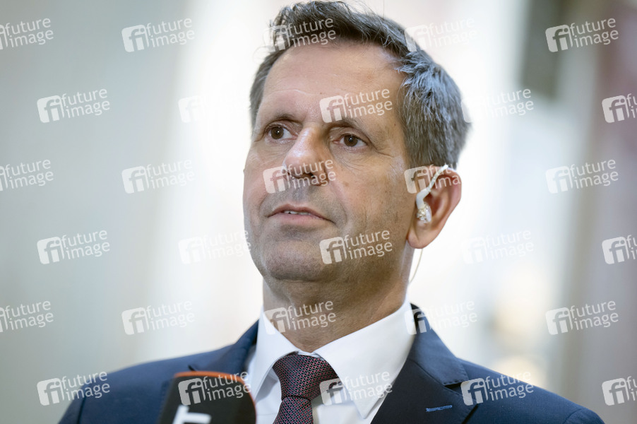 Olaf Lies beim Pressestatement am Rande der 1054. Sitzung des Bundesrates im Plenarsaal des Preußischen Herrenhauses. Berlin, 23.05.2025