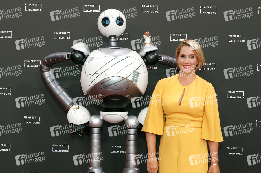 Rozzum 7134 und Judith Rakers bei der Premiere des Animationsfilms 'Der wilde Roboter / The Wild Robot' auf dem 32. Filmfest Hamburg 2024 im Cinemaxx Dammtor. Hamburg, 27.09.2024