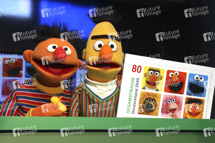 Ernie und Bert bei der Präsentation der Deutsche Post Sonderbriefmarke 'Sesamstrasse' beim NDR am Rothenbaum. Hamburg, 02.03.2020