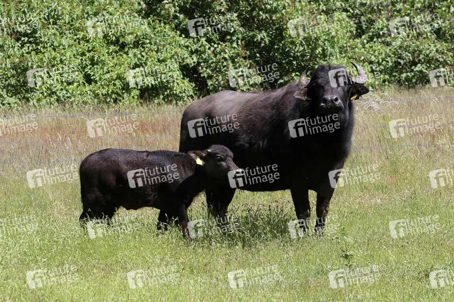 Natur, Umweltschutz, Tierschutz, Wildpflanzenschutz, Tiere, Rinder, Wildrinder, Rind, Bubalus arnee, Bovinae, Stirnwaffenträger, Hornträger, Asiatische Büffel, Wiese, Weide, Insel, Havel