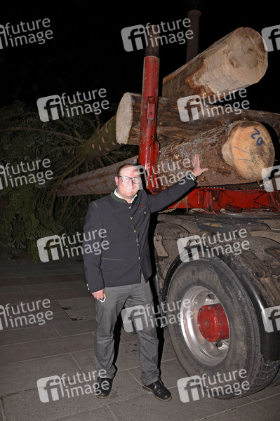 Max Bertl (Bürgermeister Steingaden) bei der Aufstellung des Christbaums aus Steingaden auf dem Marienplatz vor dem Rathaus. München, 25.11.2020