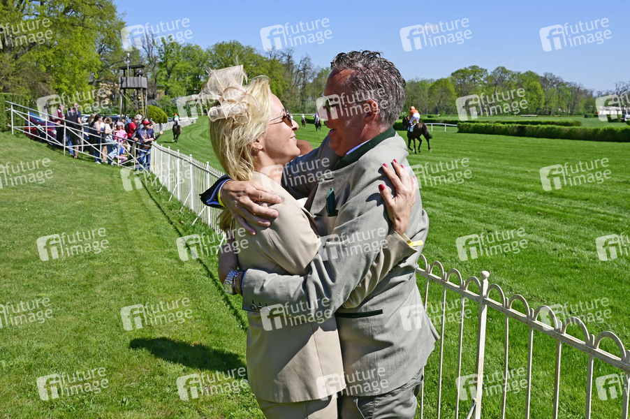Patrick Graf von Faber-Castell mit Partnerin Sandra-Sophie Trauboth bei der Großen Saisoneröffnung 2025 auf der Rennbahn Hoppegarten. Berlin, 20.04.2025