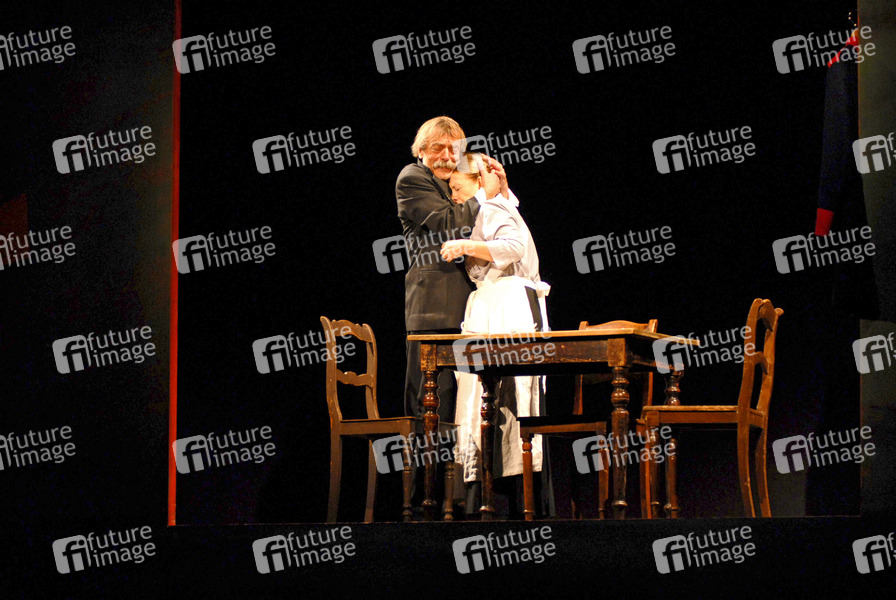 Fotoprobe von 'Der Hauptmann von Köpenick' in der Komödie am Kurfürstendamm mit Dietmar Mues, Erika Skrotzki, Gisbert-Peter Terhorst, Christian Fischer, Pier Niemann, Shantia Ullmann. Regie: Jürgen Wölffer