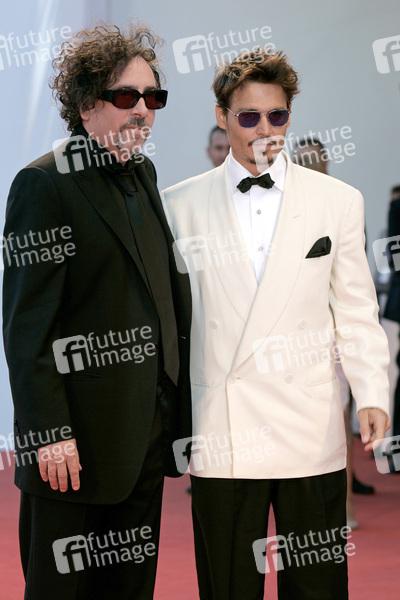 Tim Burton und Johnny Depp bei der Verleihung des Goldenen Löwen für das Lebenswerk an Tim Burton auf der Biennale di Venezia 2007 / 64. Internationale Filmfestspiele von Venedig im Palazzo del Cinema. Venedig, 05.09.2007