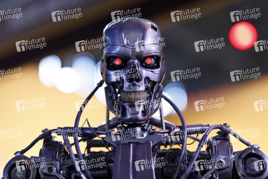 Terminator, T-800, Künstliche Intelligenz, KI, AI, Artificial Intelligence, Robot, Robotisierung, Transhumanismus, Transhumanism, Player, Bildschirmlicht, Spielesucht, Digitalisierung, Reizüberflutung, Spiele-Messe, Gaming, Gaming-Industrie, Spieleindustrie, Spielemesse, Gamingindustrie, Zocken, Daddeln, Games, Game, Spiele, PC-Spiele, Computerspiele, Konsolen, Konsolenspiele, Videospiele, Fair, Event, Gamer, Unterhaltungselektronik, Software, Hardware, europäische Leitmesse für digitale Spielekultur, internationale Gaming-Community, Gamescom Congress 2019, Virtual Reality, Browsergames, Spieletrends, Symbolfoto, Symbolbild