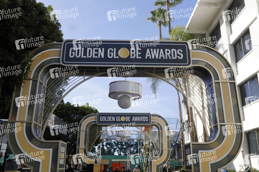 Aufbau, Preisverleihung, Preis, Film- und Fernsehpreis, Award, Auszeichnung, Ehrung, Unterhaltung, Entertainment, Kultur, Film, Kino, TV, Fernsehen, Ankunft, Roter Teppich, Golden Globes, 77th Annual Golden Globe Awards, Hollywood Foreign Press Association, HFPA