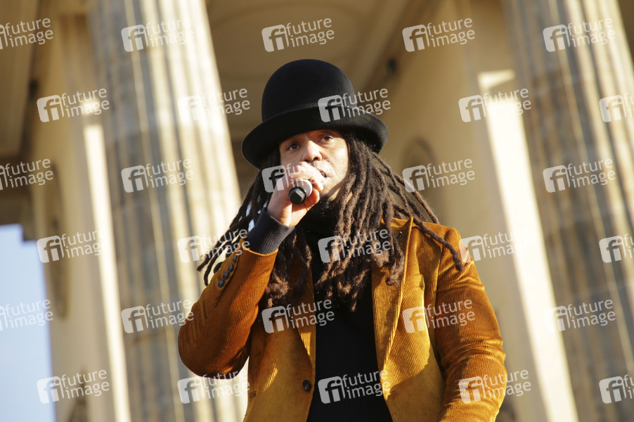 Dellé von Seeed live bei der 'Fridays for Future' Demonstration im Rahmen des weltweiten Klimastreiks am Brandenburger Tor. Berlin, 29.11.2019