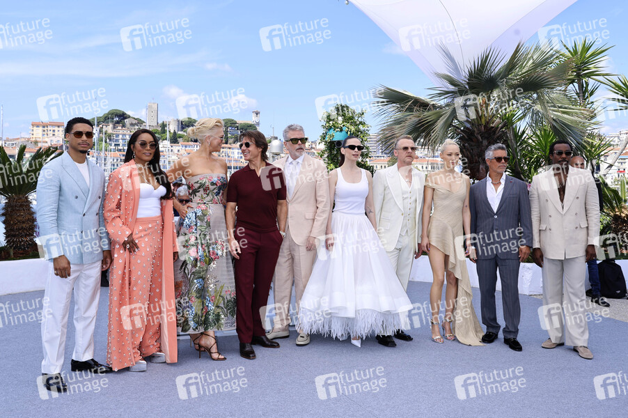 Greg Tarzan Davis, Angela Bassett, Hannah Waddingham, Tom Cruise, Christopher McQuarrie, Hayley Atwell, Simon Pegg, Pom Klementieff, Esai Morales und Tramell Tillma beim Photocall zum Kinofilm 'Mission: Impossible 8 - The Final Reckoning' auf dem Festival de Cannes 2025 / 78. Internationale Filmfestspiele von Cannes am Palais des Festivals. Cannes, 14.05.2025