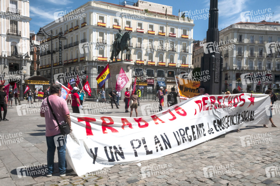 Coroan Demonstration der kommunistischen Partei PCPE auf der Puerta del Sol. Madrid, 23.05.2020
