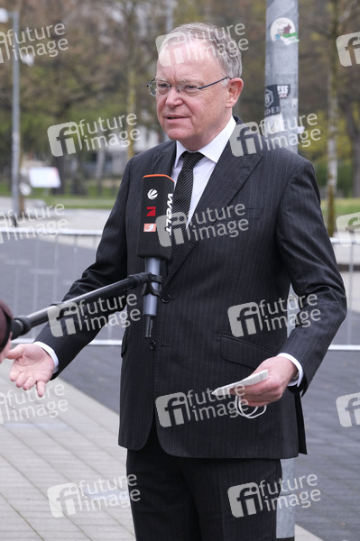 Stephan Weil bei einer Gedenkzeremonie für die Verstorbenen in der Corona-Pandemie vor der Nikolaikapelle an der Goseriede. Hannover, 18.04.2021