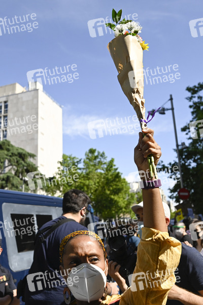 'Black Lives Matter' Demonstration gegen Polizeigewalt und Rassismus nach dem Tod des Afroamerikaners George Floyd vor der US-Botschaft. Madrid, 07.06.2020