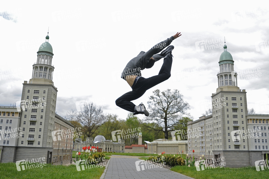 Fototermin zu 'Made in Berlin', der neuen Show im Wintergarten. Die jungen Artisten Eike von Stuckenbrok, David Pereira, Mareike Koch und das Duo Dennis und Lea zeigen einige ihrer Kunststücke im Modellpark Berlin in der Wuhlheide