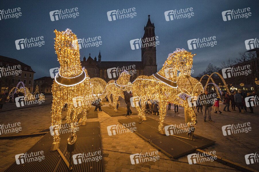 Lichterwelt auf dem Domplatz - Die Licherwelt Magdeburg mit der umfangreichste Weihnachts- und Winterbeleuchtung in Mitteldeutschland verteilt über die ganze Stadt. Magdeburg, 27.11.2022