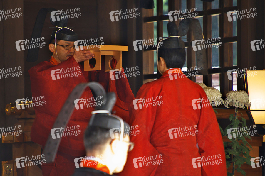 Shinto-Priester bei der Zeremonie zum 100. Jahrestag des Meiji-Schreins. Tokio, 01.11.2020