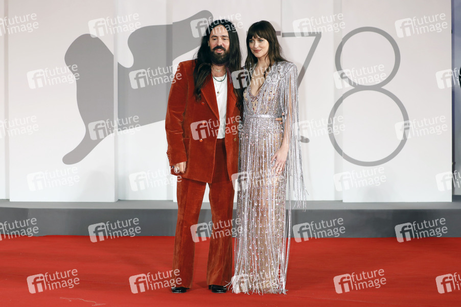 Alessandro Michele und Dakota Johnson bei der Premiere des Kinofilms 'The Lost Daughter' auf der Biennale di Venezia 2021 / 78. Internationale Filmfestspiele von Venedig im Palazzo del Cinema. Venedig, 03.09.2021
