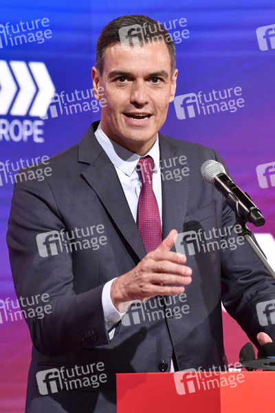 Pedro Sanchez beim Pressestatement zum Auftakt des Europa-Wochenendes der SPE-Konferenz unter dem Motto 'Mit Mut. Für Europa' in der Station Berlin. Berlin, 25.06.2021