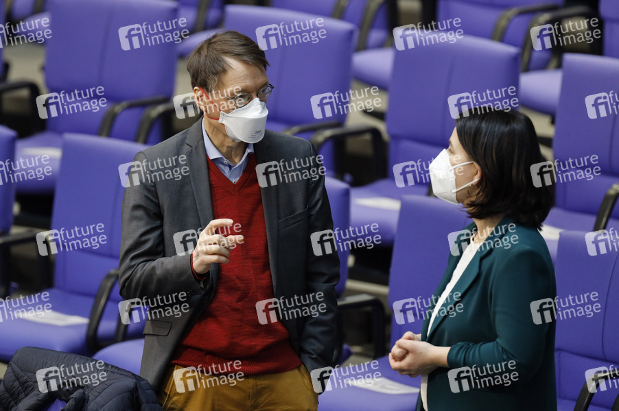 Karl Lauterbach und Annalena Baerbock in der 218. Sitzung des Deutschen Bundestages im Reichstagsgebäude. Berlin, 25.03.2021