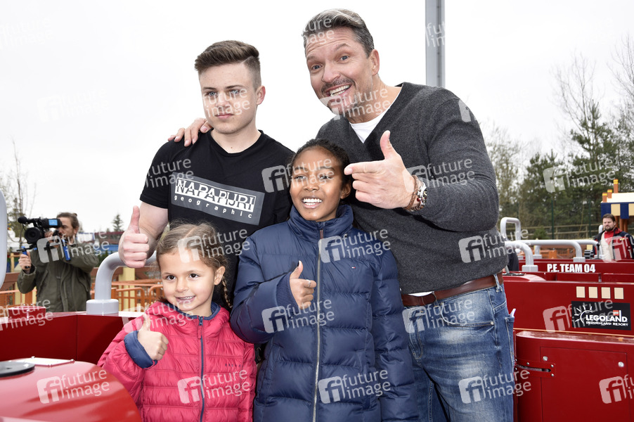 Hardy Krüger jr. mit Sohn Theo und Töchtern Layla und Vinas bei der Eröffnung des neuen Themenbereichs 'Land der Pharanonen' im Legoland Deutschland Resort. Günzburg, 06.04.2019
