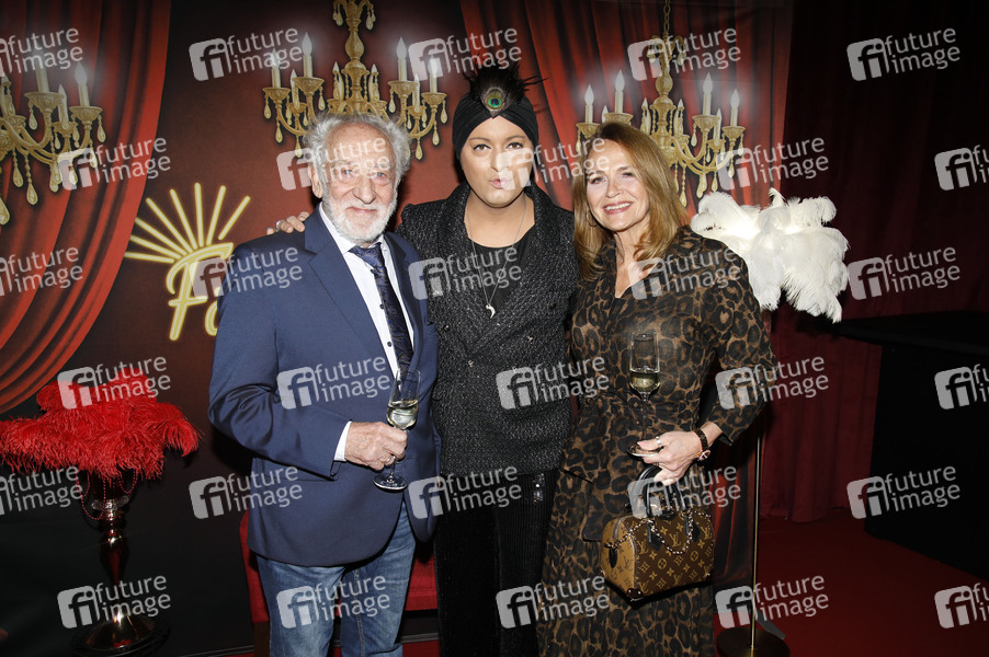 Dieter Hallervorden, Julian F.M. Stoeckel und Christiane Zander bei der Premiere der Fächer Palast Dinnershow 2025 auf dem Messplatz. Karlsruhe, 27.11.2025