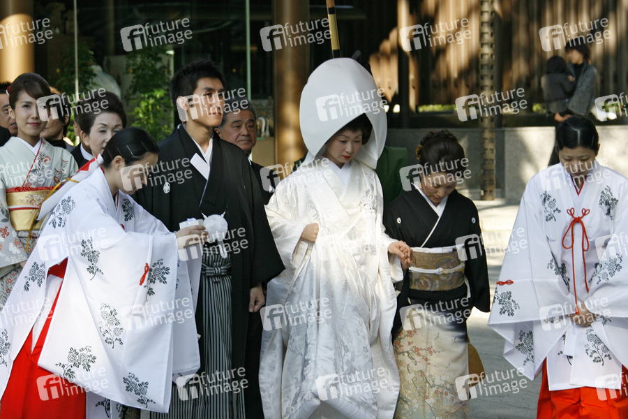 Meiji-jingu, Bräutigam, Braut, Brautpaar, Hochzeit, Kimono
