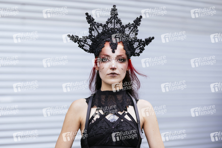 Festivalbesucherin auf dem XV. Amphi-Festival 2019 im Tanzbrunnen. Köln, 20.07.2019