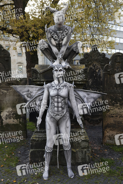 GEEK ART - Bodypainting and Transformaking: Gargoyle Photoshooting mit Enrico Lein und Marlena Wieland auf dem Nikolaifriedhof in Hannover. - Ein Projekt des Fotografen Tschiponnique Skupin und des Bodypainters und Transformakers Enrico Lein