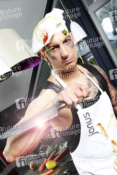SOLsnap Cover-Model März 2012, Küche, Koch, Chef de Cuisine, Messer, Tattoo, Tätowierung