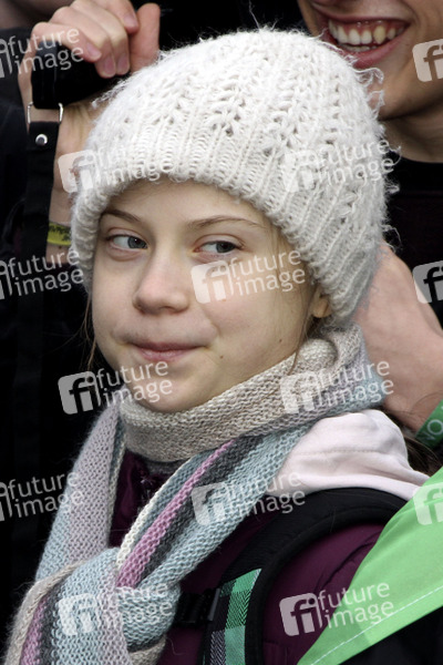 Greta Thunberg bei der Auftaktkundgebung zur 'Fridays for Future' Demonstration am Heiligengeistfeld, nach der zehntausende Teilnehmer durch die Innenstadt zogen. Hamburg, 21.02.2020