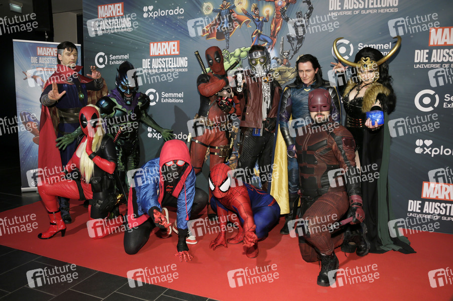 Marvel Cosplayer bei der Ausstellungseröffnung 'Marvel: Die Ausstellung - Universe of Super Heroes' im Odysseum. Köln, 06.03.2025