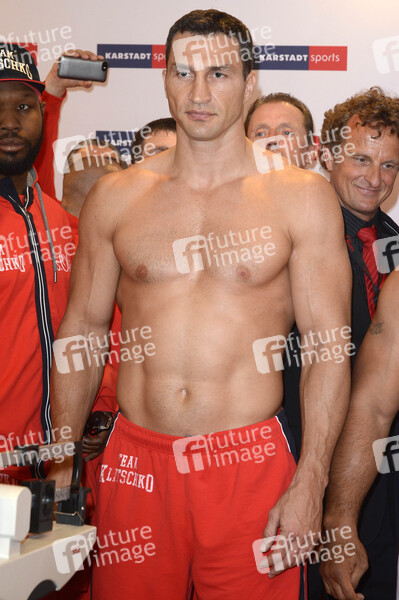 Wladimir Klitschko beim Einwiegen anlässlich des WM-Boxkampfs Wladimir Klitschko vs Alex Leapai in den Karstadt Arkaden vom Rhein-Ruhr Zentrum. Mülheim an der Ruhr, 25.04.2014