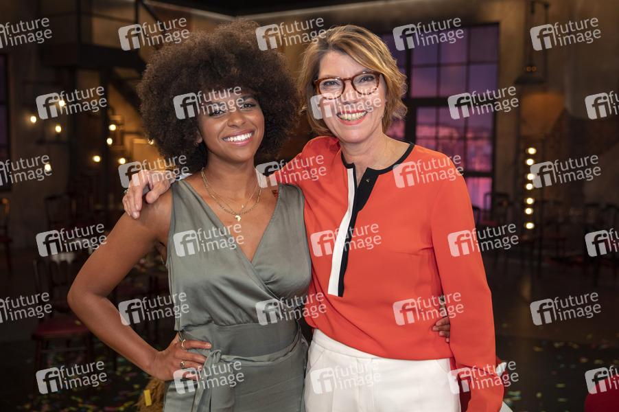 Aminata Belli und Bettina Böttinger bei der Aufzeichnung der 500. Sendung der WDR-Talkshow 'Kölner Treff' im WDR Studio BS 2. Köln, 17.05.2019