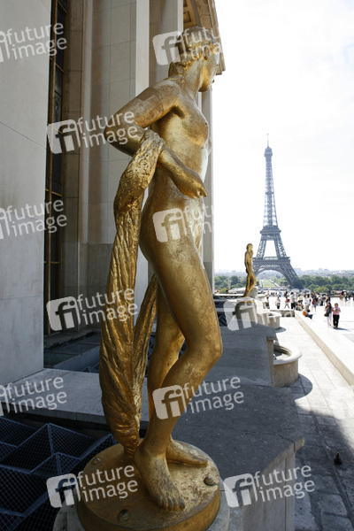 Statuen vor dem Palais de Chaillot und Eiffelturm