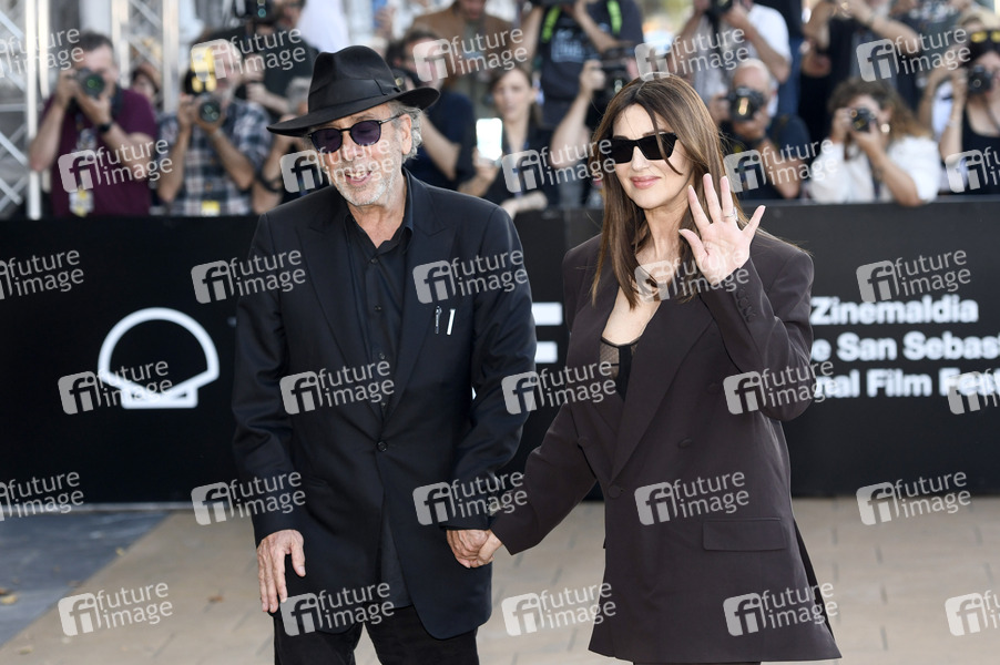 Tim Burton und Monica Bellucci bei der Ankunft am Hotel Maria Cristina auf dem 72. Internationalen Filmfestival San Sebastian / Festival Internacional de Cine de San Sebastián. San Sebastian, 25.09.2024