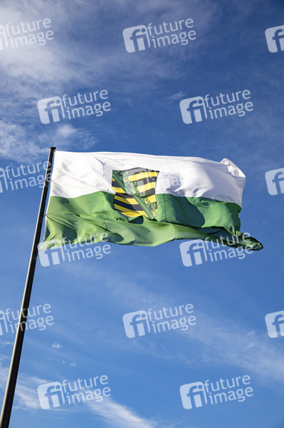 Flagge des Bundeslandes Sachsen mit Wappen. Koblenz, 17.11.2020