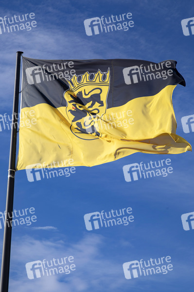 Flagge des Bundeslandes Baden-Württemberg mit Wappen. Koblenz, 17.11.2020