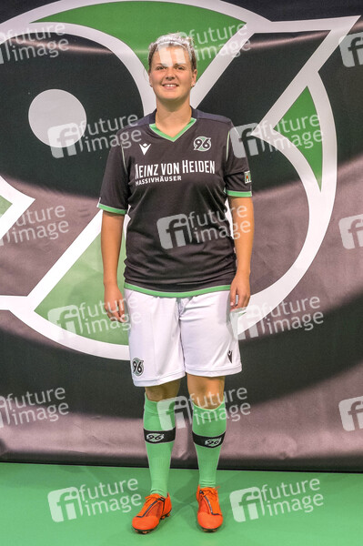 Anna-Lena Füllkrug mit schwarzem Ausweichtrikot bei der Präsentation der Hannover 96-Trikots des neuen Ausrüsters Macron für die Saison 2019/20 in der HDI Arena. Hannover, 16.06.2019