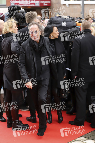 Hugo Egon Balder mit Freundin Elena Sumischewskaja bei der Trauerfeier für Jan Fedder in der Hauptkirche St. Michaelis. Hamburg, 14.01.2020