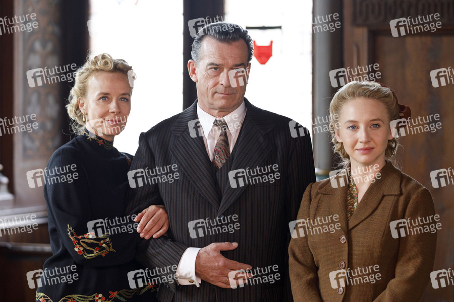 Katja Riemann, Thomas Sarbacher und Anna Maria Mühe beim Fototermin am Set des ARD-Films 'Unsere wunderbaren Jahre' im Schloss Burg Solingen. Solingen, 03.07.2019