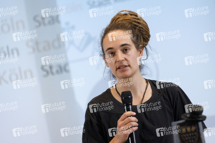 Carola Rackete erhält die mit 10.000 Euro dotierte Auszeichnung für ihr besonderes Engagement in der Flüchtlingshilfe bei der Verleihung des Karl-Küpper-Preises, der dieses Jahr zum 1. mal in Köln an Menschen vergeben wird, die sich für den Schutz der Demokratie und gegen Rassismus, Antisemitismus und jede Form der Diskriminierung engagieren, im Rathaus. Köln, 19.10.2020