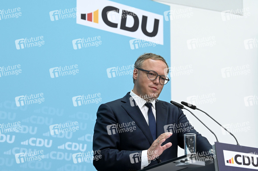 Mario Voigt bei der Pressekonferenz der CDU nach den Landtagswahlen in Thüringen und Sachsen im Konrad-Adenauer-Haus. Berlin, 02.09.2024