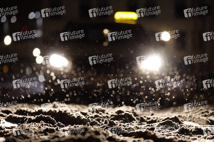 Taxi, Winter, Winterreifen, Schnee, Schneefall, Fahrzeuge, Fahrzeug, Fahrhilfe, Fahrbahn, Bremsweg, Reifen, Bodenhaftung, matschig, Antriebsketten, Anfahrhilfe, Spurketten, PKW, Räder, Rad, Größe, Stahl, Material, verzinkt, Laufflächen, Durchdrehen, Durchrutschen, Lenkachse, Längsführung, Kettenglieder, Radkasten, Stahlring, ESP, Elektronische Stabilisierung, Elektronisches Stabilitätsprogramm, Electronic Stability Control, ASR, Anti-Schlupf, Antriebsschlupfregelung, Montage, Frost, kühl, Minusgrade, Tiefschnee, verschneite Straße, Verkehrsunfälle, Verkehrsunfall, Rutschgefahr, Verkehr, Sichtweite, Winterdienst, überfrierende Nässe, Schneeregen, Schneematsch, Symbolbild, Symbolfoto
