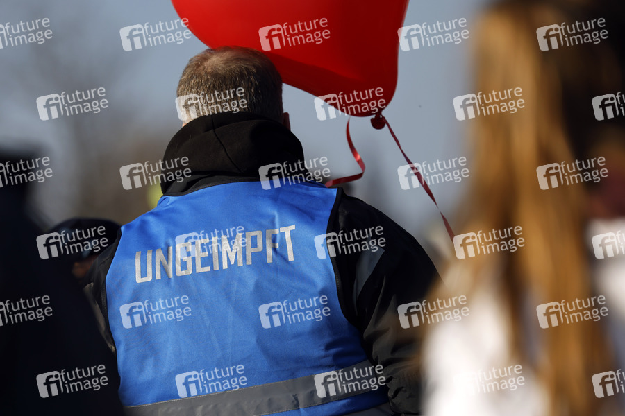 Bei einer angemeldeten Demo unter dem Motto 'Freie Impfentscheidung - Gegen die Impfpflicht' demonstrierten Tausende Gegner einer Impfpflicht mit einem Spaziergang gegen die Corona-Maßnahmen der Bundesregierung und für eine individuelle Impfentscheidung, Grundrechte und 'unversehrte' Kinder - darunter auch viele Pflegekräfte, die wegen der Impfpflicht im Gesundheitsbereich ihren Job zu verlieren drohen. Düsseldorf, 05.03.2022