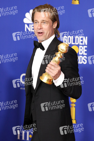 Brad Pitt mit dem Preis für den Besten Nebendarsteller in 'Once Upon a Time in Hollywood' bei der Verleihung der 77. Golden Globe Awards im Beverly Hilton Hotel. Beverly Hills, 05.01.2020