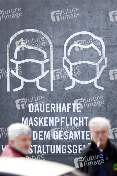 Plakate, Plakat, Mindestabstand, Maskenpflicht, Social Distancing, Mund-Nasen-Schutz, Messegelände, Fußgängerzone, Notbremse, Notbremsen, Corona-Notbremse, Bundes-Notbremse, Bundes-Lockdown, Corona, Virus, Coronavirus, Corona-Virus, Coronaviren, Viren, Infektion, Infektionsschutz, Infektionsschutzgesetz, Kontaktbeschränkung, Kontaktbeschränkungen, Covid-19, Covid19, Coronazahlen, Corona-Zahlen, Coronapolitik, Ausnahmezustand, Coronamaßnahmen, Corona-Maßnahmen, Inzidenz, Inzidenzwert, Pandemie, 7-Tage-Inzidenz, Testpflicht, Testangebotspflicht, Coronatest, Impfung, Impfkampagne, Durchimpfen, Impfen, Impfmittel, Gesundheitspolitik, RKI, R-Wert, Infektionen, Sieben-Tage-R-Wert, Impfzentren, Herdenimmunität, Quarantäne, Mindestabstand, Maskenpflicht, Lockdown, Lock Down, Teil-Lockdown, Bundes-Lockdown, harter Lockdown, Notbremsengesetz, Brücken-Lockdown, Brückenlockdown, FFP2-Maske, FFP2-Masken, FFP2-Maskenpflicht, Mund-Nasen-Schutz, medizinische Maske, Gesichtsmaske, Maske tragen, Lockdown Light, Schutzmaske, zweite Welle, dritte Welle, Corona-Regeln, Coronaregeln, Coronaepidemie, Corona-Epidemie, Wocheninzidenz, Pandemie-Gesetz, Infektionslage, Infektionsgeschehen, Schutzmaßnahmen, Gesellschaft, Coronaschutzverordnung, Corona-Schutzverordnung, Gesundheitssystem, Infektionszahlen, OP-Maske, OP-Masken, medizinische Masken, Gesichtsmasken, Gesichtsmaske, Maskenmüll, Mundschutz, Werbekampagne, Symbolbild, Symbolfoto