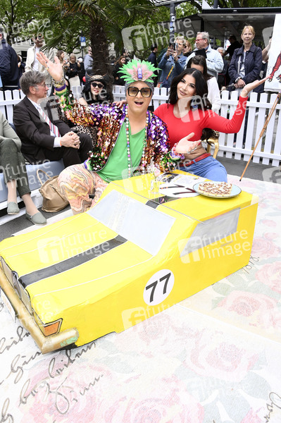 Julian F.M. Stoeckel und Micaela Schäfer bei der Präsentation des historischen Mercedes Benz SLC 280 Erwin bei den Classic Days Berlin auf dem Kurfürstendamm. Berlin, 10.05.2025
