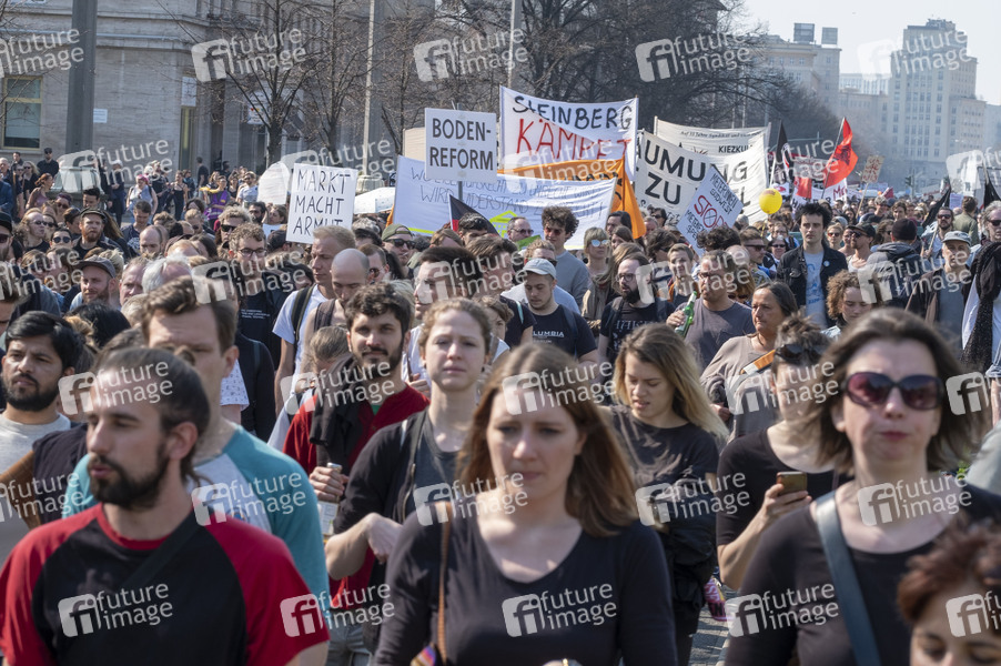 Demonstration unter dem Motto 'Gemeinsam gegen Verdrängung und Mietenwahnsinn' und Beginn der Unterschriftensammlung zum Volksbegehren für die Enteigung von Wohnungsgesellschaften. Berlin, 06.04.2019