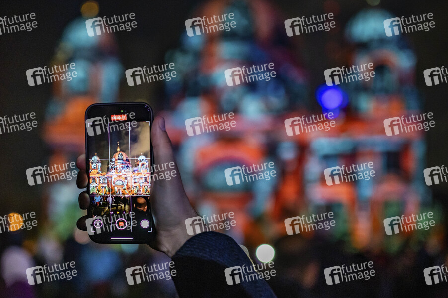 Der Berliner Dom am Lustgarten auf der Museumsinsel. Das Festival of Lights Berlin gehört zu den bekanntesten Lichtfestivals weltweit. Es ist ein kostenloser Event in Berlin, der jährlich im Herbst stattfindet und 10 Tage lang bekannte Berliner Sehenswürdigkeiten durch Illuminationen, lichtkünstlerische Projektionen und 3D-Mappings aufwändig in Szene setzt. Berlin, 06.10.2024
