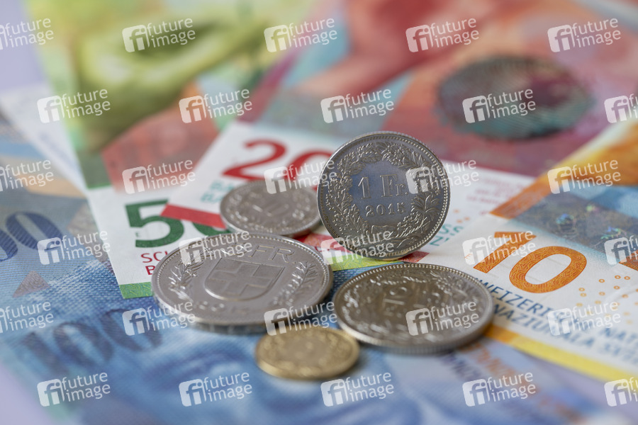 Schweizer Franken Banknoten und Münzen