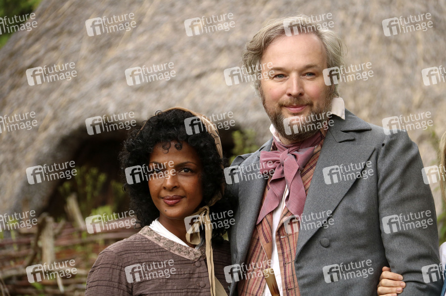 Dennenesch Zoude und Stephan Grossmann beim Pressefototermin am Set des Märchenfilms 'Das Märchen vom goldenen Taler' für die ARD-Märchenreihe 'Sechs auf einen Streich' im Museumsdorf Düppel. Berlin, 08.07.2020