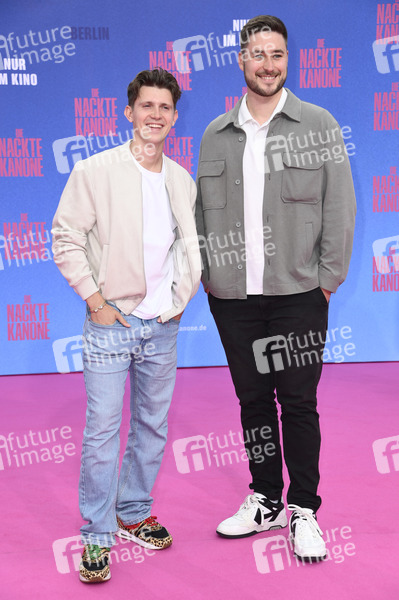 Lennart Betzgen mit Gast bei der Premiere des Kinofilms 'Die nackte Kanone / The Naked Gun' im Kino UCI Luxe East Side Gallery. Berlin, 24.07.2025